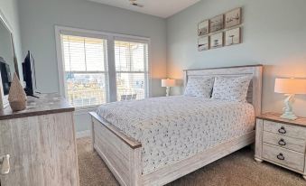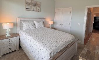 Two bedrooms have queen sized beds, one bedroom features a twin-over-full bunk bed with a full size crib, and the fourth bedroom includes two twin-over-twin bunkbeds. All bedrooms have flat screened televisions and large closets. Family friendly, we include books, games and puzzles for your rainy-day or evening activities.