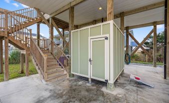 Parking is available under this piling home, and has plenty of space for your boat. The outdoor shower is a private, easy way to rinse off the sand after a beach day.
