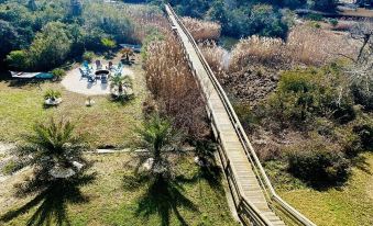 Its our last night and i am so sad to leave this slice of heaven and return to reality tomorrow. Between fishing off the dock, kayaks if you want to use them, hot tub to enjoy you watch the cattails sway in the breeze and see the herrin flying overhead….all while the kids are in their own domain having a ping pong tourney and challenge each others’ high scores in your personal arcade room. Plenty of porches to sneak off to and take in a quiet moment.and the dogs had exactly what they needed in the backyard. We did see a gator on the property but he did his own thing. It’s close to shops, restaurants and the beach. Couldn't ask for more out of our time here…it has everything!