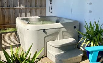 Visited with family to celebrate anniversary. The house had many amenities: kayaks, games, puzzles, books, hot tub, fire pit and a fenced in yard. Kitchen was well equipped, but appliances were a little quirky. If you worked in the corner of the countertop, you had to be very careful because the stovetop was easily bumped on and the fridge's icemaker didn't work so you had to use a countertop icemaker. The house is 3 levels with the kitchen on top. The only level that you can walk into without steps is the basement which has no bathroom. There is a fenced in yard. There are multiple balconies. An inlet runs behind the house with a private boardwalk to a small dock. There is no view of the beach. From the 3rd floor balcony, you can see the ocean on the horizon. The walk to the beach is about 8 blocks with sidewalks. However, if you want to drive down with your umbrella, cooler, etc...parking at the public access is $20 per day. We enjoyed our stay! The house was clean and comfortable and very nice. If your goal is easy access to the beach or beach views, this is not the best fit though.