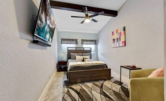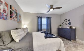 Escape to your own oasis in this beautiful home! This space comes equipped to make your stay enjoyable. There is WiFi, office space for remote work. There is a living room with comfortable furniture and a 65” Smart TV. King bed (2 single massage beds together) with a large dresser in master suite. Full closet with shelves and hangers. Queen bed in the second bedroom, with full closet and shelves and a Smart TV. Family room has a sleeper couch (single size) and it's own smart tv.