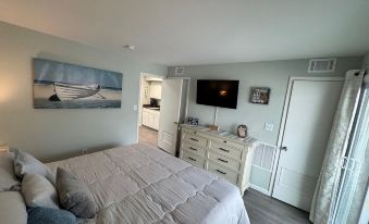 Our property is perfect for a couple or small family. It is in walking distance to many restaurants, beach, boardwalk, and shopping district. There is a pool on premise. Pool is open in summer season, hours subject to change. This is a 1 bedroom, 1 bath unit with a king size bed. There is a living room area with kitchenette and full size pull out sofa bed. Private outdoor deck. Condo was renovated in winter 2024. New paint, new furniture, new tv.