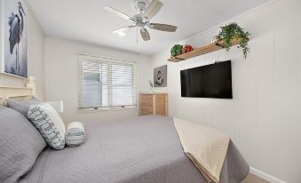 Each bedroom has a different theme! The master bedroom has a whale theme completed with a King Bed and a full bathroom attached. The 2nd bedroom has a Heron theme with a full bed. There is a fun feel to the 3rd bedroom perfect for kids! Complete with a custom pallet wall with several fun features including a turning ships wheel and a connect 4 wall game. This room has a twin over full bunkbed with a trundle. You can park 1 car in the designated F2 parking space behind the home (+ overflow free street parking surrounding the building). Sheets, bath towels and hand towels are included in the cleaning fee price. All linens will be delivered prior to check-in.