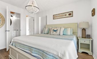 Charming, quiet beach canal home. Our home has 5 bedrooms and an open loft, 3 baths, and comfortably sleeps 10. High speed internet and Smart TVs throughout with YouTube TV, Amazon Prime, Netflix, Disney+. Generous outdoor living areas, fenced in yard, boat dock, outdoor shower. Beach access is a quick 5 minute walk or bike or car ride from home. Home has well stocked kitchen, charcoal grill and outdoor seating.