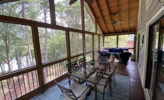 But that's not what you came for, is it? Outside the sliders, you'll find a huge, screened-in porch with great views down to the LAKE. Two ceiling fans keep you cool when it's hot and there is plenty of seating for whatever you want to do, whether it be relaxing, eating, drinking, or even playing games. A three-burner Weber grill is just outside the porch to handle those tasty grill nights!