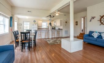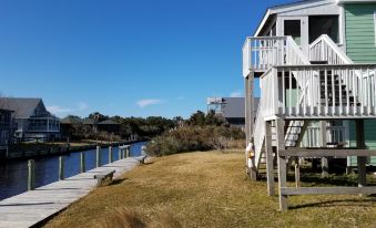This large Ocracoke home offers wonderful accommodations for a large family. Enjoy the convenience of two separate kitchens and living areas. Take in the views of either the backyard canal with boat dockage or Pamlico Sound views across the street. The screened porches and decks provide relaxation in a comfortable outdoor setting.