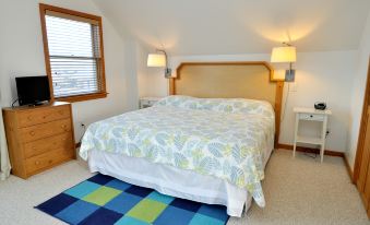 Second Floor: Primary Suite with King bed, TV, and sitting area. Full Bath with tub/shower.