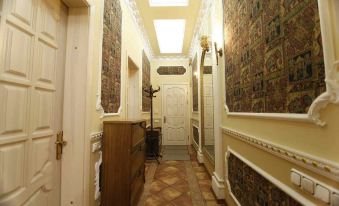 The tinted balcony overlooks the courtyard from the windows you can see your car, a front door renovated with a coded lock, six sleeping places, two beds and a folding leather double sofa, huge antique wardrobes.