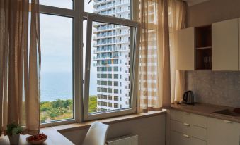 Luxurious renovated apartment with sea view is located seven minutes walk from the alley of Arcadia and from the sea. Sleeps up to 4 people , very close walk to cafes, shopping centers , bus stops , grocery stores, pharmacies , bakeries restaurants , boardwalk. and much more attractions the holiday city of Odessa has to offer. Parking fee is extra. The apartment has everything for a comfortable rest. Feel free to contact our lovely super host Anastasya for more information.☺️