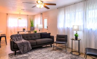 The Bright Home is located just off of SH-338 Loop S. This prime location is great for travelers looking for a relaxing and quiet home in a safe neighborhood. Explore the unique, stylish spaces inside and out of the home. This 4 Bedroom 2 bath home can sleep 8 people comfortably. (1,732 sq. ft. in a 10,201 sq. ft. lot) BBQ the Texas Way with our new Offset smoker!About pets:No pets allowed, service animals permitted.About checkOut:Check out before 11:00 AM.About children:Children allowed: ages 13-17.About checkIn:Check in after 4:00 PM.About smoking:Smoking is not permitted.About minBookingAge:Minimum age to rent: 21.About events:No events allowed.