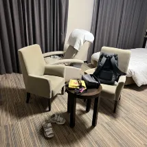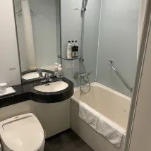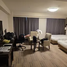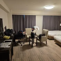 В лобби предоставляются ежедневные туалетные принадлежности. Просторный номер с массажным креслом и очистителем воздуха. Парковка для гостей стоит 800 иен. До магазина Donki 15-20 минут ходьбы, а внизу есть магазин товаров повседневного спроса Lawson. Всё хорошо.