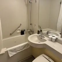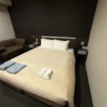 设施: В Японии номер оказался достаточно просторным, кровать тоже большая и удобная. На 10-м этаже есть большая общественная баня, где можно расслабиться и снять усталость — очень понравилось! Имеются массажные кресла и прачечная самообслуживания (стирка и сушка), что очень удобно.
