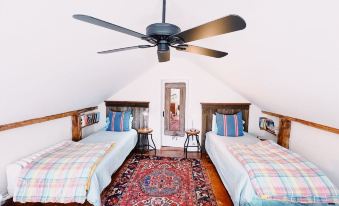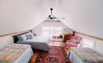 Lovely old home with many nooks and crannies. Lots of comfortable sitting spots, indoors and out. Two bedrooms on the ground floor for family members that might be challenged by STEEP staircases. It's a lovely, interesting old home.