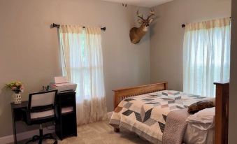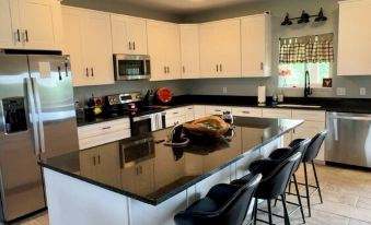 Find true serenity just minutes from Southern Missouri’s largest attractions. This private 1800sq. ft. 3BR/2BA home sleeps 7 and sits at the end of a long driveway for total privacy without sacrificing convenience. Enjoy an open layout with cozy gathering spaces, 75” Smart TV, fully equipped kitchen, WiFi, and laundry. Bedroom 1 has a king bed + 65” TV, Bedroom 2 a full bed + Smart TV, and Bedroom 3 a full bed + workspace. Close to Table Rock Lake and Big Cedar—perfect for families or friends!