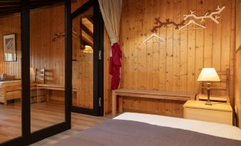 + Chalet well located for skiing directly on the slopes without taking the car. Well equipped. Quiet in a residential area. - Car box entrance millimetered on its width. - Forgetting cleaning and sheets in the mezzanine. But Interhome's responsiveness the