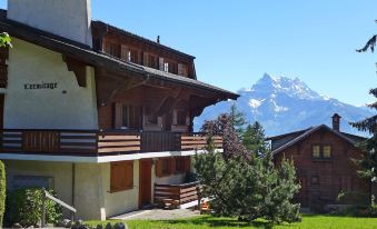 Comfortable chalet "Ermitage", 3 storeys. On the outskirts, 800 m from the centre of Villars, in a quiet position, 400 m from the skiing area, south facing position. In the house: central heating system, washing machine (extra), tumble dryer (for shared use, extra). In Winter: please take snow chains. Parking. Shop 1 km, grocery 300 m, restaurant 600 m, bus stop 500 m, railway station "Villars" 1.5 km, thermal baths "Lavey-les-bains" 19 km. Golf course (18 hole) 7 km, mountain railway 1.6 km, gondola lift 400 m, ski bus stop 400 m, children's ski school 2 km. Please note: no lift. Free ski bus service to the ski region Villars. "Ermitage 11", 4-room apartment 90 m2 on 2nd floor, south facing position. With sloping ceilings, fully renovated in 2021, comfortable and beautiful furnishings: large living/dining room with sloping ceilings with open-hearth fireplace, dining table and TV (flat screen). Exit to the balcony, south facing position. 1 double bedroom with sloping ceilings with 1 french bed (180 cm, length 200 cm), shower/WC. 2 rooms, each room with 1 x 2 bunk beds (90 cm). Open kitchen (oven, dishwasher, 4 ceramic glass hob hotplates, toaster, kettle, microwave, freezer, electric coffee machine, Capsules for coffee machine (Nespresso) extra, raclette grill, fondue Set (cheese)). Shower, sep. WC. Balcony, south facing position. Balcony furniture, deck chairs (2). Very beautiful panoramic view of the mountains. Facilities: hair dryer. Internet (WiFi, free). Garage space n 4. Please note: non-smokers only.
