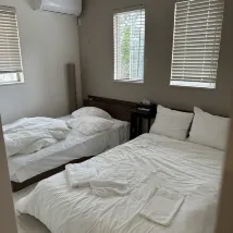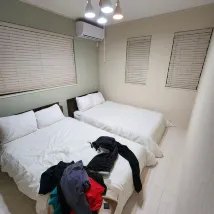 В гостевом доме четыре номера, в каждом из которых по две двуспальные кровати, что идеально подходит для двух семей. Стоимость проживания в сутки составляет менее 4000 новых тайваньских долларов, что делает проживание здесь комфортным на несколько дней. Расположение немного выше центра, недалеко от аквариума и острова Коури. В 3 минутах езды есть магазин товаров повседневного спроса и несколько ресторанов. Очень удобное расположение, очень рекомендую!