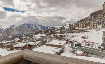 Orcières: Apartment block. 50 m from the skiing area. For shared use: swimming pool heated. In the house: lift. Supermarket 500 m. "T. Bergerie", 2-room apartment 36 m2. Object suitable for 6 adults. 1 room with 1 double bed and TV. Living room with 1 sofabed and 1 x 2 bunk beds, 1 pull-out bed. Kitchen (dishwasher, 4 ceramic glass hob hotplates, toaster, kettle, microwave, freezer, electric coffee machine). Bath/WC, sep. WC. Balcony. View of the mountains. Facilities: Internet (WiFi, free). Garage (1 car) at the house. Please note: non-smokers only. Smoke alarm. Offer by a commercial proprietor according to Art. 155, IV, CGI