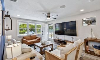 Welcome to your Coastal Cottage getaway! Located just a short walk to both beach access and the Intracoastal waterway. Enjoy modern comfort with an 86" Smart TV, stylish finishes, and plenty of space to relax. The modern kitchen is fully equipped for all your cooking needs. Outside, Enjoy a fun round of put-put or unwind around the fire pit in Adirondack chairs. Perfect for families or small groups looking for a peaceful coastal getaway. Come experience the best of beach living!About pets:No pets allowed.About checkOut:Check out before 12:00 PM.About children:Children allowed: ages 0-17.About checkIn:Check in after 3:00 PM.About smoking:Smoking is not permitted.About minBookingAge:Minimum age to rent: 23.About events:No events allowed.