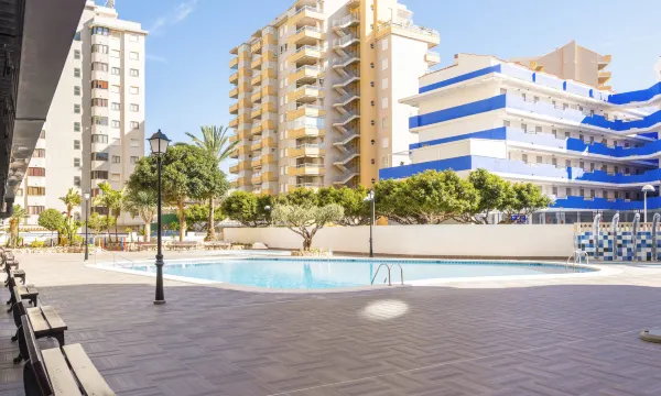 Apartment block "Bonaire IV - La Concha". In the resort 500 m from the centre of Oropesa del Mar, in a central, sunny position, 300 m from the sea, 300 m from the beach. For shared use: swimming pool (8 x 15 m, depth 70 - 240 cm, seasonal availability: 15.May. - 15.Oct.). Children's pool, children's playground. In the house: lift. Grocery, restaurant, bar, café 100 m, bus stop 50 m, railway station 500 m, sandy beach "La Concha". Groups of teenagers on request only. Neighbourhood highly sensitive to noise. Quietness and good behaviour expected. "Bonaire IV - La Concha", 2-room apartment 45 m2 on 4th floor. Practical and comfortable furnishings: living/dining room with dining table, digital TV, flat screen, air conditioning and forced-air heating. Exit to the terrace. 1 room with 1 french bed (135 cm, length 190 cm). Open kitchen (oven, 4 ceramic glass hob hotplates, toaster, microwave, freezer, electric coffee machine). Bath/bidet/WC. Terrace. Terrace furniture. View of the resort. Facilities: washing machine, iron, hair dryer. Please note: non-smokers only, no parking. 1 small pet/ dog allowed. VT-45347-CS ESFCTU00001202600049183400000000000000000VT-45347-CS1