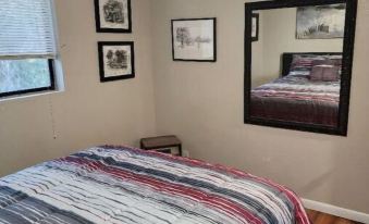 A simple, tranquil getaway that was much appreciated while spending time in town with family. The owners were very communicative and brought us extra supplies when needed. The deck was lovely with beautiful views of the valley. Perfect for 3 adults and a child. Charlie was the star of the show!