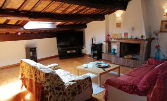 Reachable from a flight of 50 steps in a historic building in Orvieto, the attic consists of a large living room with open kitchen and fireplace.