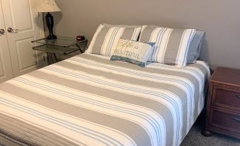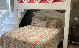 The other 2 bedrooms contain queen sized beds and closets. One of the bedrooms connects to the 2nd bathroom located off the kitchen. A twin mattress on a loft is located in one bedroom, giving another place for a guest to sleep. Over twenty DVD's are located in one bedroom ranging from kid to adult shows. You may also want to watch some Netflix on the smart tv! There are board games located in the closet.