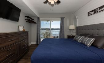 MINIMUM AGE: 25!! SORRY NO PARTY GROUPS -NO BACHELOR OR BACHELORETTE PARTIES!!! Step into your own piece of paradise at Hawks Nest Condos, the ultimate waterfront get-a-way located in the heart of Osage Beach! Wake up to the stunning sunrise and enjoy your morning coffee on the spacious covered deck, overlooking the peaceful cove. Unwind in the beautifully decorated 2-bed, 2-bath condominium featuring a spacious primary bedroom with king-size bed and direct access to the deck. The second bedroom offers two twin beds, ensuring everyone has their own sanctuary to relax. Prefer to cook your own meals? We have you covered with our fully equipped kitchen! Unwind in the cozy living area with stunning water views through floor to ceiling windows. Each room boasts a Roku Smart TV for endless entertainment options.