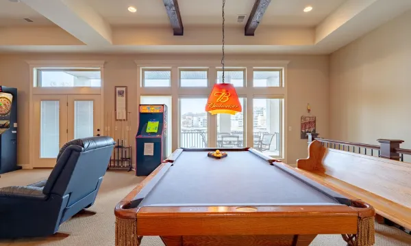 The bedrooms and bathrooms were well situated for privacy. Kitchen had everything needed. Middle floor family area was a hit! Bar area, pool table, darts, 2 large TVs! 3 decks and large dock made it easy to enjoy the outdoors. Would definitely book again!
