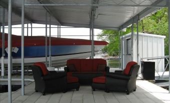 We provide gas grill for your cookouts. Outdoor firepit. Private dock for fishing & swimming. 28' Boat slip available for your own boat or rent from local vendors. Covered Parking for 2 cars with space for additional and trailer if needed. All with easy steps down to the water.