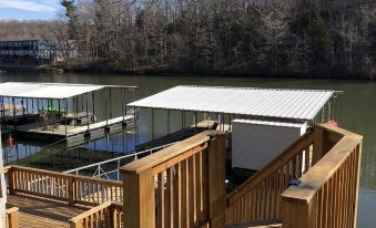 Amazing property. Pictures do not do it justice. The host was great to deal with and showed us around so that we knew where outside lighting switches were located and how the sound system at the dock worked. The property is lovely and very nicely equipped for a stay. The kitchen had everything we needed. The cove is extremely quiet and great for swimming or just relaxing in the water. The dock is great with a nice bar and sitting area so you can just sit at the water if you would like while others jump in. We tied up to the dock on the days we decided to boat and didn't have any issues there. There was upper and lower parking available and others have mentioned the steep driveway, which after you use it once or twice it isn't that bad. Looking at other properties in the area having the driveway and lower parking made loading and unloading much easier.