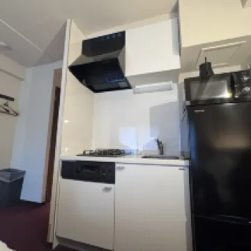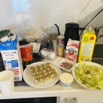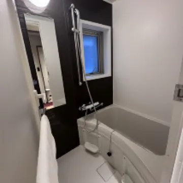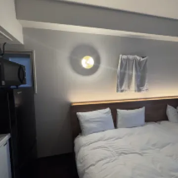 Номер был не таким большим, как на фотографиях; вероятно, их снимали на широкоугольный объектив. Он идеально подходил для двоих человек, но не такой просторный для троих. Кровать, однако, вероятно, самая большая в Японии. Разложив два чемодана, оставалось место для движения, но не слишком много. Ванная комната была довольно маленькой, неподходящей для высоких мужчин. Стол был таким низким, что даже детям приходилось приседать. Диван был таким коротким, что после того, как вы положили на него сумки, на нем помещались только двое. В номере были микроволновка и стиральная машина, что было очень удобно. Было приятно, что в номере никто не убирался, так что можно было просто разложить свои вещи. После пандемии я пользуюсь одноразовыми полотенцами в поездках, а не гостиничными. Не нужно разделять мусор; его можно просто отнести в мусорную комнату на первом этаже. Мы с другом забронировали два номера вместе. Один выходил на боковую улицу и был довольно тихим, а другой — на эстакаду и был немного шумным. В наш цифровой век открывать дверь ключом было немного непривычно, и мне приходилось каждый день носить с собой тяжёлый ключ. Вход в метро (B4) находится примерно в пяти минутах ходьбы, но подземный переход немного длиннее, ещё около пяти минут. До Don Quijote и Matsumoto Kiyoshi (они находятся прямо напротив друг друга) можно дойти примерно за 8-10 минут. Внизу есть FamilyMart и 7-Eleven. Лифт довольно маленький, и каждое утро приходилось долго ждать, потому что многим приходилось выписываться с большими чемоданами до 10:00 утра. После выписки мы оставили чемоданы на первом этаже без присмотра. Онлайн-обслуживание клиентов отеля на китайском языке на Ctrip было очень удобным, а отсутствие стойки регистрации также экономило место и рабочую силу.