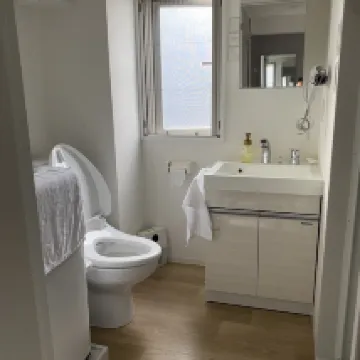 Номер оказался даже больше, чем я ожидал, с двумя полностью раздвижными обеденными столами шириной 28 дюймов. Номер был очень чистым, а кровать – очень удобной. В номере была мини-кухня и микроволновая печь для простых блюд. В ванной комнате был вентилятор, что было приятным дополнением. Во время нашего пребывания в Осаке температура опускалась почти до нуля, и в номере был путеводитель с подробными инструкциями по использованию каждого прибора, а также информацией о близлежащих ресторанах, магазинах и многом другом. Это был действительно самый продуманный отель типа «постель и завтрак», в котором я когда-либо останавливался. Внизу находится индийский карри-ресторан, рекомендованный Мишлен, принадлежащий японцу. Там очень вкусно, стоит попробовать. Отель типа «постель и завтрак» также очень удобно расположен – в трёх минутах ходьбы от выхода C со станции Мацуямачи. Доступ в здание и номер удобно контролируется кодом, что избавляет от необходимости в карточках от номера. После выезда вы можете запереть свой багаж прямо на лестничной клетке. В целом, я настоятельно рекомендую этот отель типа «постель и завтрак».