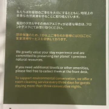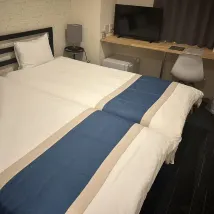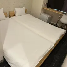 Я остановился здесь, чтобы поехать на выставку. Всего четыре остановки от места проведения выставки, так что это очень удобно. Когда я вышел из поезда, там было много персонала с плакатами Expo. В номере было всего две кровати, поэтому было тесновато. Хотя это бизнес-отель, это понятно, но на полу было много мелкого мусора, а на простынях были пятна крови, которые я не смог полностью отстирать, что создавало впечатление некоторой негигиеничности. В объявлении говорилось, что уборка взимается при проживании от трёх ночей и более. Полотенца не меняют, поэтому нужно брать свои с полки рядом со стойкой регистрации, но поздно вечером банных полотенец не оказалось (оставались только полотенца для ног). Рядом со станцией Бентенчо в торговом центре есть ресторан, а на первом этаже — баня «Лопия», что очень удобно. Также есть отличная общественная баня, открытая до 23:00. Единственное, что мне понравилось в номере, — это большой напор воды в душе и расположение. Цена разумная, так что если вы просто хотите поспать, то это нормально.