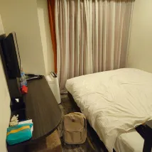 Номер был очень чистым, с письменным столом и удобной кроватью. На стойке регистрации был автомат для самостоятельной регистрации заезда и отъезда, что было очень удобно. Отель также удобно расположен в нескольких минутах ходьбы от станции метро. Рядом есть рестораны и бары, включая 7-Eleven, FamilyMart и Lawson. На втором этаже отеля есть прачечная со стиральной и сушильной машиной стоимостью 600 иен.