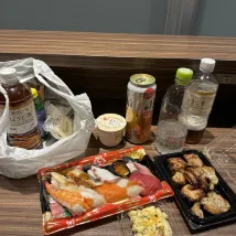 А рядом со станцией JR Namba находится большой магазин. Если вы придете после 21:00, вас ждет скидка в связи с закрытием, так что имейте это в виду. Это отличная сделка. Покупайте всевозможную еду, от суши до других блюд!! Купите их и съешьте на 5-м этаже, чтобы закончить свое расписание!