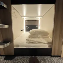 Отличный капсульный отель. Удобно спускаться под землёй к магазинам и ресторанам. Очень чисто, предоставляется дополнительная подушка. Нельзя принимать ванну с 9:30 до 17:00 – слишком долго, не очень удобно для тех, кто хочет поспать по утрам. К тому же, из-за односпальной кровати-капсулы ночью виден свет сверху. В целом, это хорошее соотношение цены и качества, и чисто.