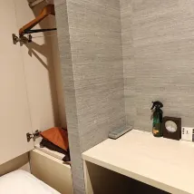 На этаже рядом с ванной имеются индивидуальные шкафчики, если у вас нет большого чемодана. Там можно хранить небольшие чемоданы. На первом этаже есть место для хранения больших чемоданов. В ванной комнате также есть ванна, что хорошо помогает избавиться от усталости! Это немного далеко от Дотонбори, но я быстро добрался, исследовав окрестности и прогулявшись по переулкам. Так как Universal — мой основной пункт назначения, мне нравится добираться туда из JR Namba!