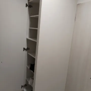 В комнате есть большой шкаф для обуви, небольшая кладовая и большой гардероб.