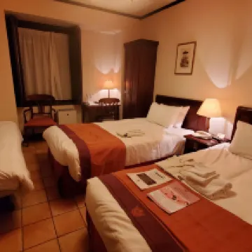 Отель выглядит немного старомодным, возможно, из-за ретро-стиля. Но атмосфера церкви прекрасная. Возможно, это трёхместный номер, но он немного тесноват. Завтрак вкусный, разнообразный, обслуживание хорошее.