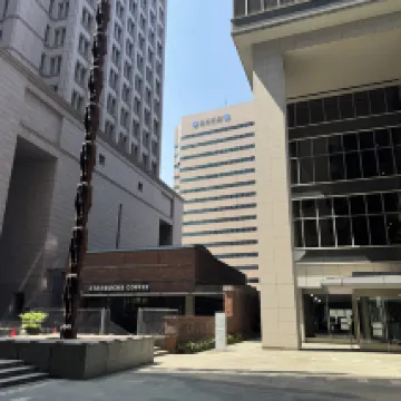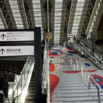 Выйдите из западного выхода вокзала Осака, поверните направо и идите прямо. Вы найдёте его рядом с отелем Hearton Hotel Nishi-Umeda. Выйдите из автобуса до аэропорта, перейдите улицу, поверните налево и пройдите около 200-300 метров. Найти его несложно.