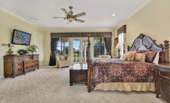 Our Large Luxury 6 bedroom home is very centrally located in the Homestead Community within wlaking distance of Reunion Grande and all ammenities. It has a lovely South facing aspect for you to enjoy a leisurely breakfast directly on the the 8th hole of the Watson golf course. All 6 bedrooms are en-suite. 2 bedrooms are on the ground floor and 4 bedrooms upstairs.