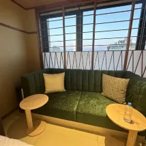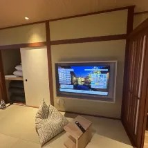 Я в полном восторге! Номер по японским меркам просторный, онсэн очень приятный, а после купания есть зона отдыха, где можно выпить чаю и полакомиться мороженым. Обслуживание в отеле очень внимательное и заботливое. Поскольку нас было много, нам специально предоставили отдельные залы для ужина и завтрака. Еда была очень обильной и вкусной. Всё это сделало наше пребывание очень приятным. Храм Хиёси-тайся в сезон момидзи был просто невероятно красив!