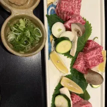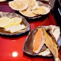 Кухня порадовала своим разнообразием. На ужин были как свежее сашими, так и тающая во рту говядина Оми сябу-сябу. На завтрак можно было самостоятельно приготовить свежую рыбу и гребешки. Горячие источники также очень понравились!