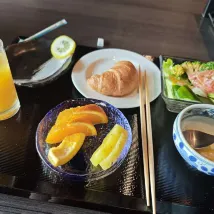 Отель очень чистый. Он состоит из главного и нового корпусов; новый корпус очень современный и хорошо оборудован. На завтрак подавали барбекю, особенно вкусным был жареный кальмар. На ужин в первый день был хого из говядины Оми, на второй — жареная говядина Оми. Сет с хого был вкуснее. Расположение отличное — на первой линии с видом на озеро Бива. Ханадзима-дори и Юмотокан находятся позади Рёкусэйтэй, через дорогу, но вид из Юмотокана был закрыт Рёкусэйтэй. Справа от выхода из отеля есть прачечная (в другом отзыве говорилось, что прачечная есть и слева). По диагонали напротив расположен круглосуточный магазин. Самым вкусным блюдом в отеле был крабовый рис! Действительно восхитительно! Персонал ресторана и стойки регистрации очень приветливый. Поездка на такси до долины Бивако стоила менее 400 юаней.