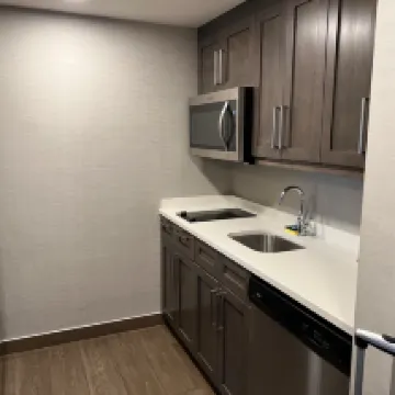 very good for family travel by car, same standard with other hilton suites hotel and this is very new hotel. breakfast and hot water coffe are provided at lobby. additional blanket are provided in room. whole kicken equipted except kettle, instead we use microwave to make hot water.