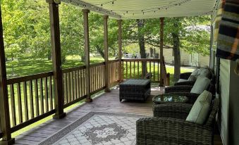 What a beautiful retreat! Loved the peace and quiet, watching the birds and squirrels and chipmunks, and sitting on the dock watching the fish go by. The train was a bit of a surprise the first time it went by and rattled the place a bit. Couldn’t figure out how to turn the tv off but it went off on its own eventually. All in all, we had a great visit!