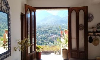 Un havre qui domine le village, pour séjourner dans le calme et la gentillesse délicieuse de son hôte Jaouad, confort simple et cuisine pleine de saveur préparée avec soin et provenant des marchés avoisinants. Un joli point de vue et une piscine dans un jardin en terrasses aux tons de bleus apaisants. Un hôte tellement adorable et plein de connaissances s'il vous dit de converser dans ce lieu tranquille.