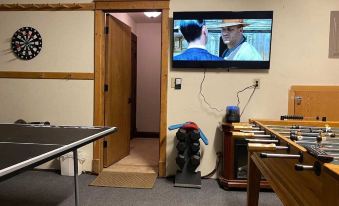 We've got you covered! We're equipped with a pack'n'play, baby gate and kid friendly dishes. Additionally, theres a blowup twin bed for a kid in the upstairs bedroom for families traveling with kiddos. We also have a few games, books and puzzles for your use while you're here.