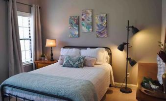 The bedrooms are warm and inviting, with plenty of natural light, comfortable beds and blackout curtains and blinds to ensure you have a restful night's sleep. Whether you're dining alfresco, watching the game on the swing bed or need a relaxing moment, our large back porch is also perfect for enjoying the fresh fall air. Overall, you'll find our space to be your home away from home after a day of cheering on the Ole Miss or exploring the Square!
